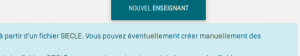 Il est indispensable d'avoir effectué une première importation SIECLE (enseignants et élèves) ou d'avoir procédé à un premier paramétrage HORS SIECLE (créé au moins une division contenant au moins un élève) sinon le bouton “Créer un nouvel enseignant” ne sera pas visible.
