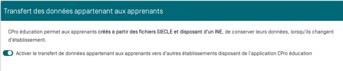 - Les deux établissements activent le transfert des données (“Paramètres / Transferts”) ;