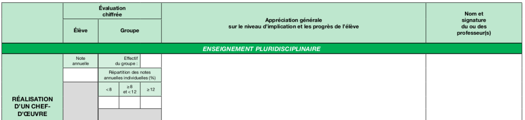 Appréciation générale du chef-d’œuvre réalisé pour l'année en cours