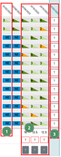 Chaque colonne de niveau de compétence correspond à un bilan.