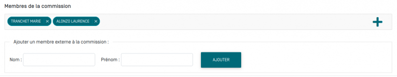 Il est indispensable de positionner au moins deux membres de la commission de certification pour l'épreuve. Ces personnes peuvent être recherchées dans la liste des enseignants de l'établissement en cliquant sur le bouton