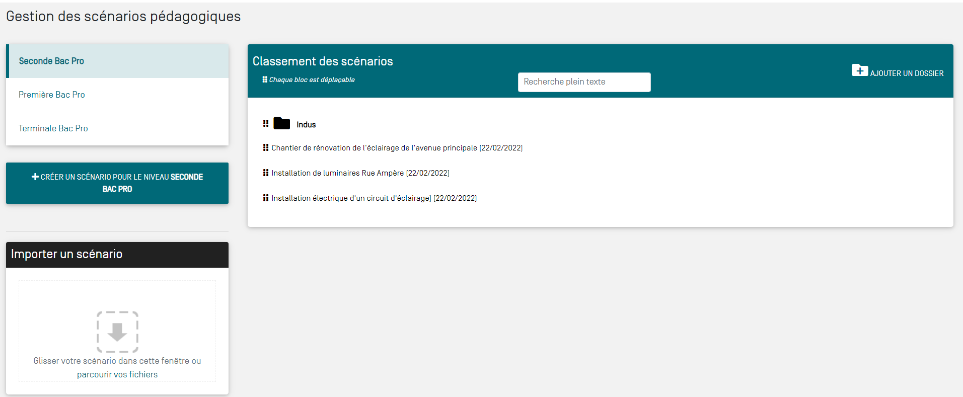 Ce module, destiné au profil Enseignant du Bac Pro MÉLÉC, permet la déclaration et la gestion de scénarios pédagogiques.