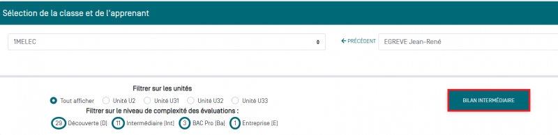 Une fois que le positionnement de toutes les compétences a été choisi, un clic sur le bouton “Bilan intermédiaire” permet de procéder à la création du bilan intermédiaire.