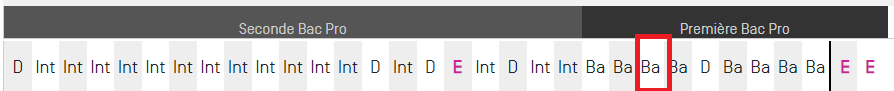 Le trait vertical noir vous indique que toutes les évaluations situées à sa droite n’ont pas encore été prise en compte dans un bilan. Il repère donc les évaluations à considérer pour statuer sur le degré de maîtrise actuel des compétences.